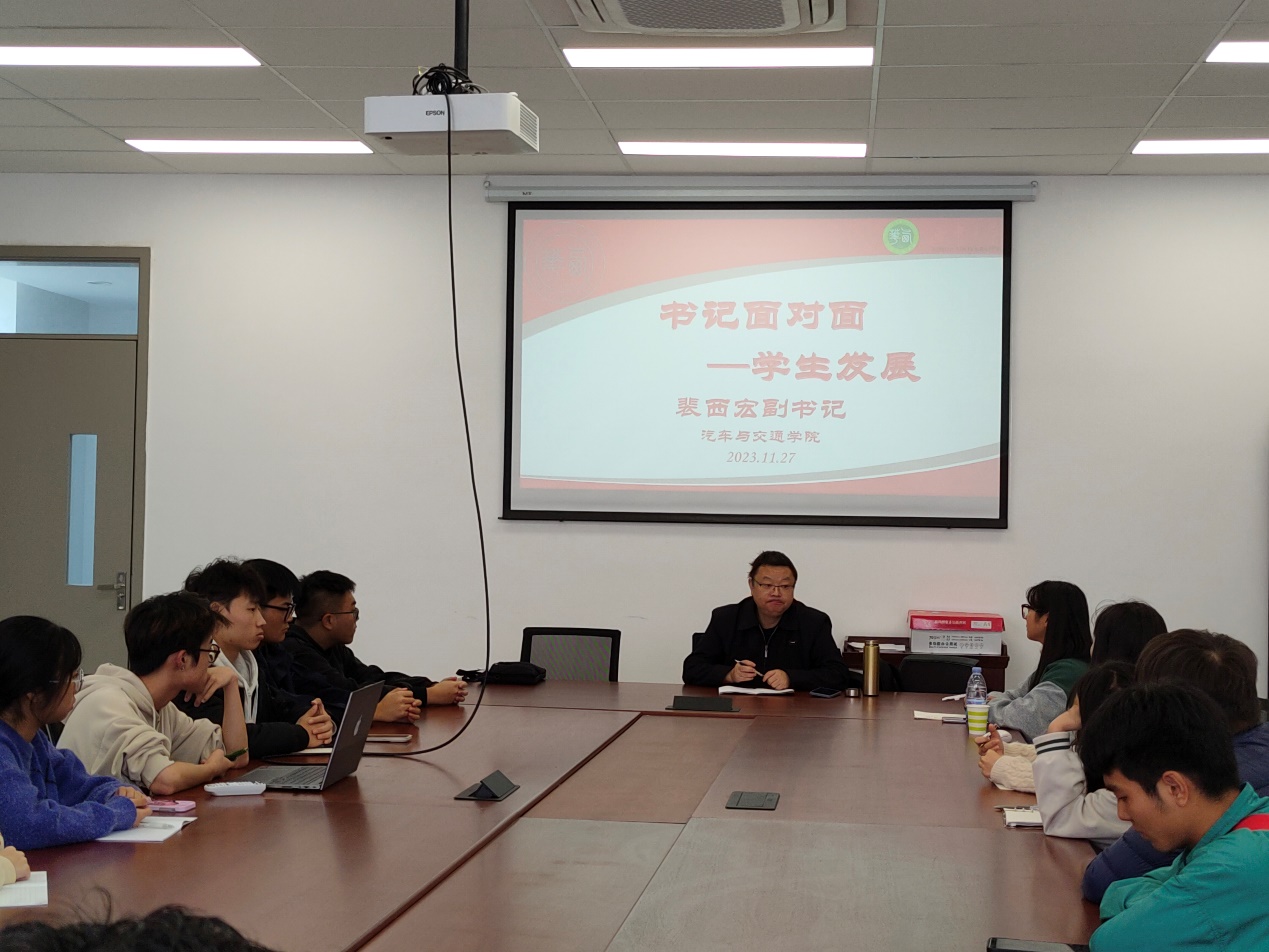 近两个半小时的交流会中,裴西宏和同学们相谈甚欢,并鼓励大家要同时兼顾学生工作和学业,通过参与团学活动、学科竞赛等方式,培养生活乐趣。同时,他也鼓励我们培养良好的政治觉悟,积极向党组织靠拢。针对同学们的就业困惑,裴西宏详细介绍了汽车学院相关专业在就业市场上的需求,并具体分析了各个专业的就业领域和子行业。对同学们反馈的教育培养计划不适宜的问题,他表示高度重视,并承诺将尽快联络相关部门共同解决。此外,对于入伍、学科竞赛、社会实践及留学等问题,裴西宏均作了耐心解答,并鼓励大家勇于尝试,寻找梦想之路。