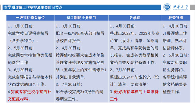 本学期评估工作安排及主要时间节点