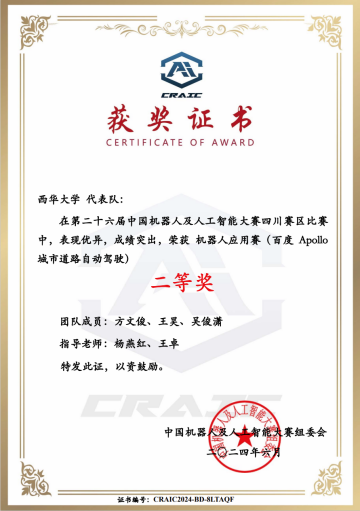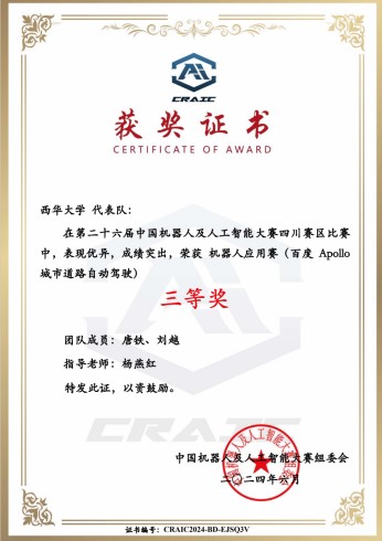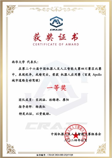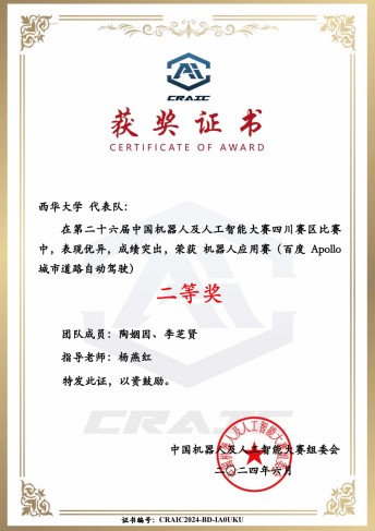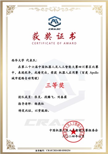 近日,由百度Apollo与中国人工智能学会联合举办的“第26届中国机器人及人工智能大赛·百度Apollo星火自动驾驶大赛”(线上仿真赛)四川省赛区结果揭晓。我校汽车学子在此次比赛中取得了优异成绩,共获得一等奖两项、二等奖两项、三等奖两项。