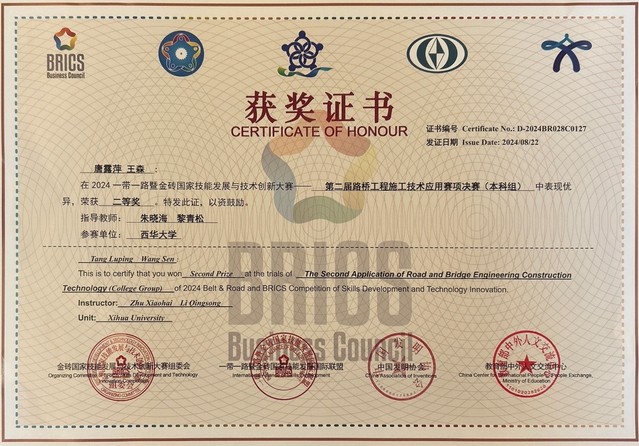 2024年8月20-22日,2024一带一路暨金砖国家技能发展与技术创新大赛——第二届路桥工程施工技术应用赛项决赛(本科组)在山东交通职业学院举行。