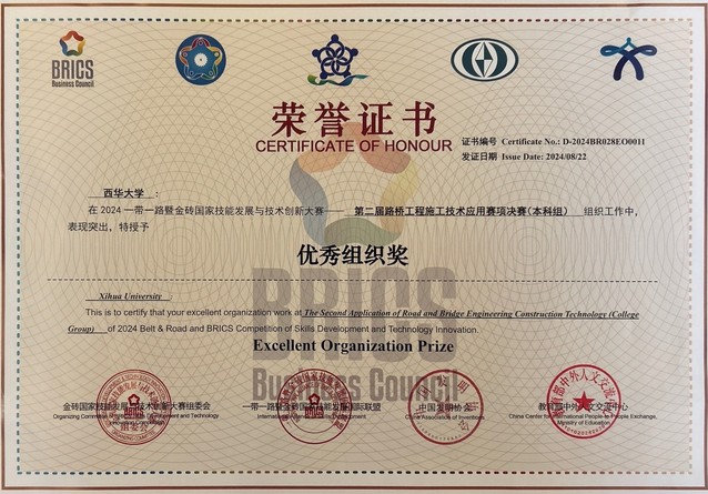 bevictor伟德交通工程专业学生唐露萍、王森(指导教师:朱晓海、黎青松)荣获全国二等奖,bevictor伟德荣获“优秀组织奖”。