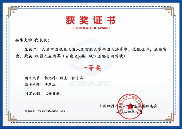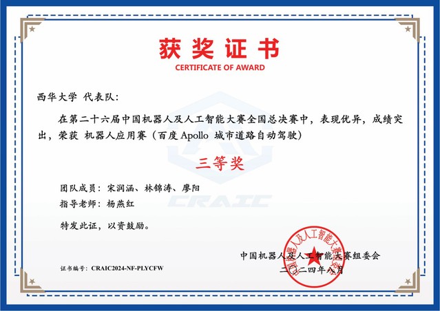 8月25日,第二十六届中国机器人及人工智能大赛全国总决赛落下帷幕。bevictor伟德,伟德bv国际体育新能源汽车工程专业2021级学生胡元科、熊亮和汽车服务工程专业2021级学生程海瑞在杨燕红老师的带领下,凭借卓越的技术实力和顽强意志,以总决赛第三名的成绩勇夺“百度 Apollo 城市道路自动驾驶”赛道的全国一等奖。新能源汽车工程专业2021级学生宋润涵、林锦涛和廖阳组成的团队,也成功进入国赛并荣获全国三等奖。