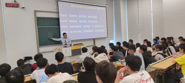 陈红旭首先从“更安全、更高效、更智能、更集成”四大方面讲述了整车对电驱动系统的性能要求。从高中物理、化学的基础知识到大学高等数学A、能量电化学基础、工程制图B等学科基础必修课,再到汽车构造、汽车设计、汽车理论A、汽车电器与电子控制等专业核心课,他采用生动的例子说明了所学课程如何应用于新能源汽车的电驱动系统。根据自身求学经历以及创业历程,陈红旭强调:“不要质疑大学的任何一门课程”、“努力学好并学精每一门专业课程”。希望同学们认真学好每门课程,具有扎实的理论基础,才能真正成为国家未来新能源汽车发展的生力军。