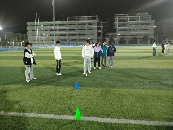 每队选定1名同学担任“盲人”角色,2名同学作为“目标”,而剩余的4位同学则扮演“指引者”,他们的任务是指导“盲人”成功捕捉“目标”并撕下其名牌。被蒙上双眼的同学,在其他伙伴的悉心指引下,勇敢地踏上寻找并捕获“目标”的征程。每位参与者都全身心地投入其中,初时蒙眼的紧张与小心翼翼,在听到来自周围伙伴清晰指令的瞬间,迅速转化为果断的行动,他们一步步逼近“目标”。