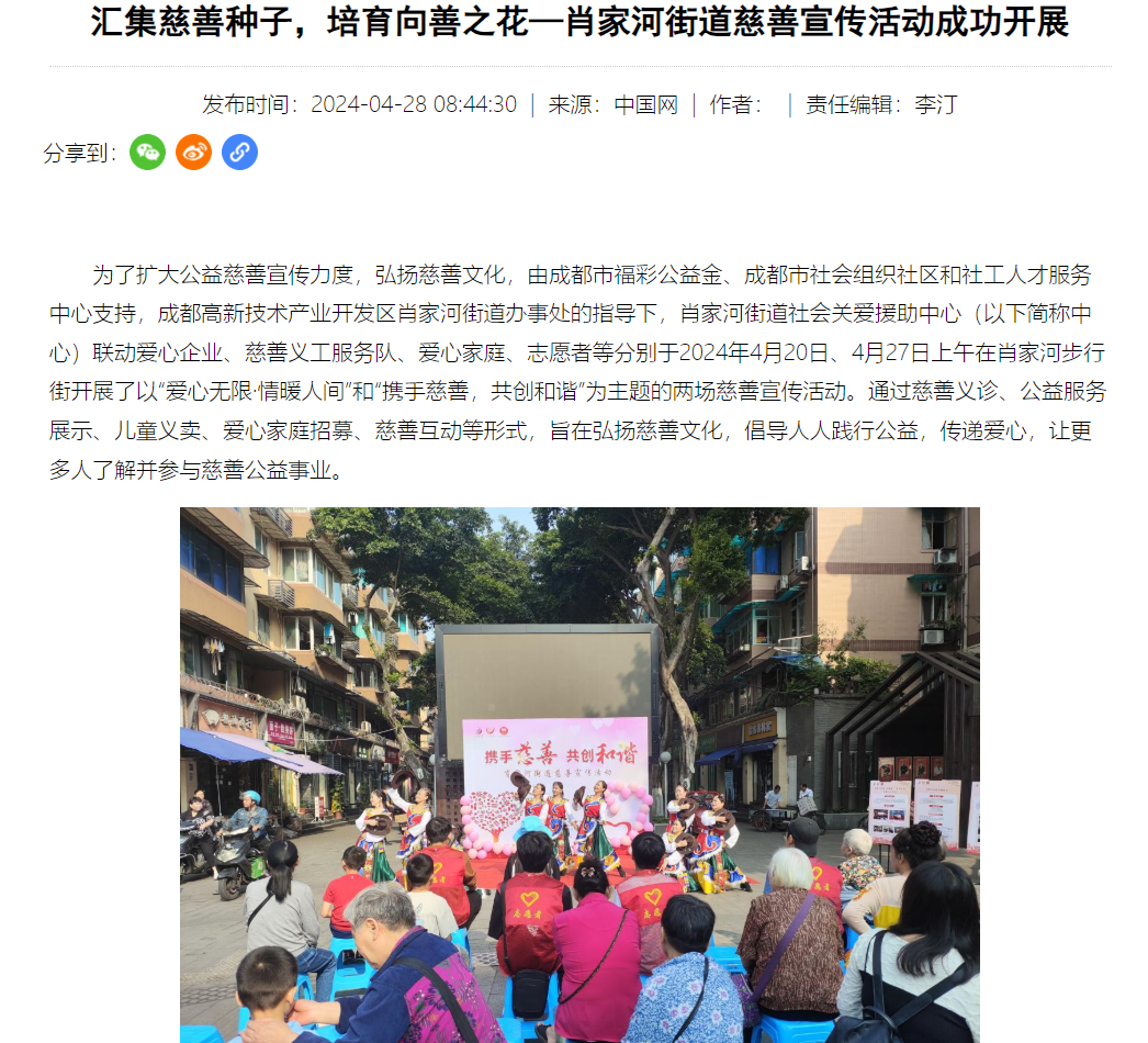 我院青年志愿者服务队以成都和宜宾两地为“主战场”,共计组织开展志愿服务120余次,发动全院2000名同学积极参与,在兴蓉社区、兴瓦社区、附属幼儿园、虹满天养老院、小月亮职工之家、石岗社区、邦泰社区、红霞养老院等20余个地方留下了同学们开展弘扬中华传统文化、阳光助残、敬老爱幼、关爱邻里、秩序维护、慈善募捐、心理帮扶等工作的靓丽身影,服务群众约6000余人次,获得成都日报锦观新闻、同行社工、成都市高新肖家河、活力顺江·公园里的家、bevictor伟德官微官博等主流媒体报道30余次。