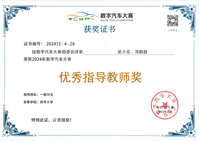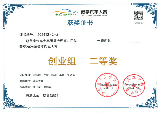 2024年12月14-15日,第七届数字汽车大赛全国总决赛在北京市经济技术开发区圆满举办。我院何钰钏、严骥、陈洲、李颖、张远浩等5名学生组成“一路向北”团队所提交的参赛作品《氢能动力核“芯”-燃料电池系统控制器研发》斩获数字汽车大赛创业组二等奖,武小花、邓鹏毅获得优秀指导教师奖,bevictor伟德获优秀学校组织奖。