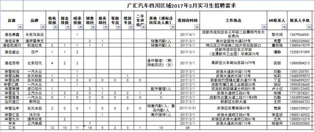 广汇申蓉各店面的实习生招聘需求见下图,有工作意向的同学可直接与相关HR负责人联系。