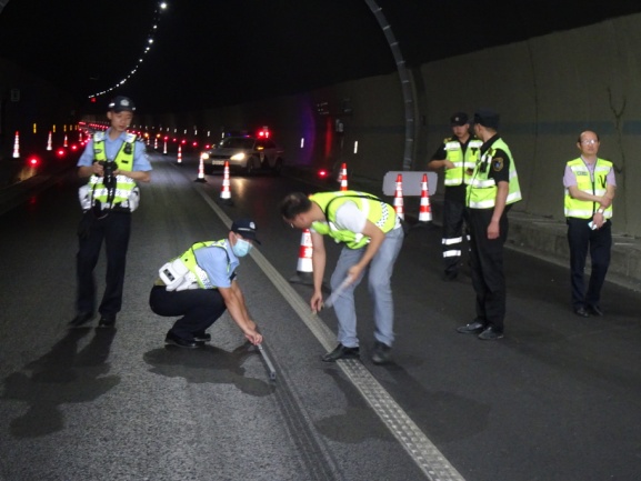 我校教师在事故道路现场采集数据