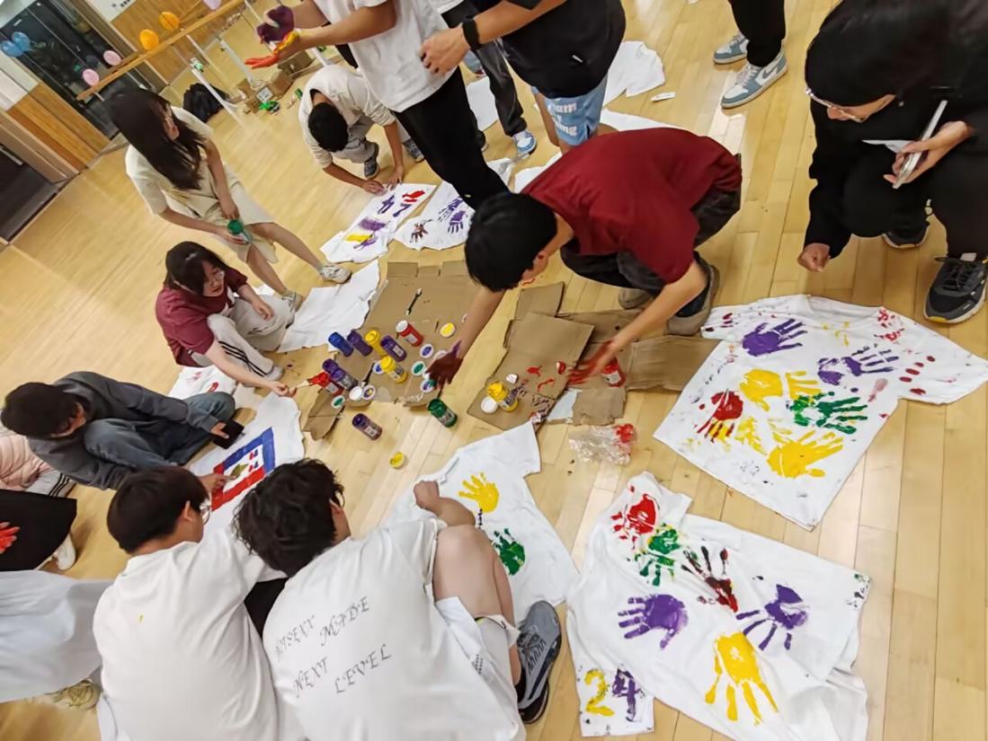 活动在充满艺术气息的DIY文化衫设计中拉开序幕。两校同学随机组队,围绕“青春”、“未来”、“创新”等主题,在空白T恤上尽情挥洒创意。设计稿上,抽象的手掌图案,则传递着两校学子携手同行、共创未来的美好愿景。画笔飞舞间,不仅展现了工科学子的奇思妙想和动手实践能力,更在轻松的协作中迅速打破了初识的陌生感,一件件独一无二的“友谊衫”成为这次相遇最温暖的纪念品。