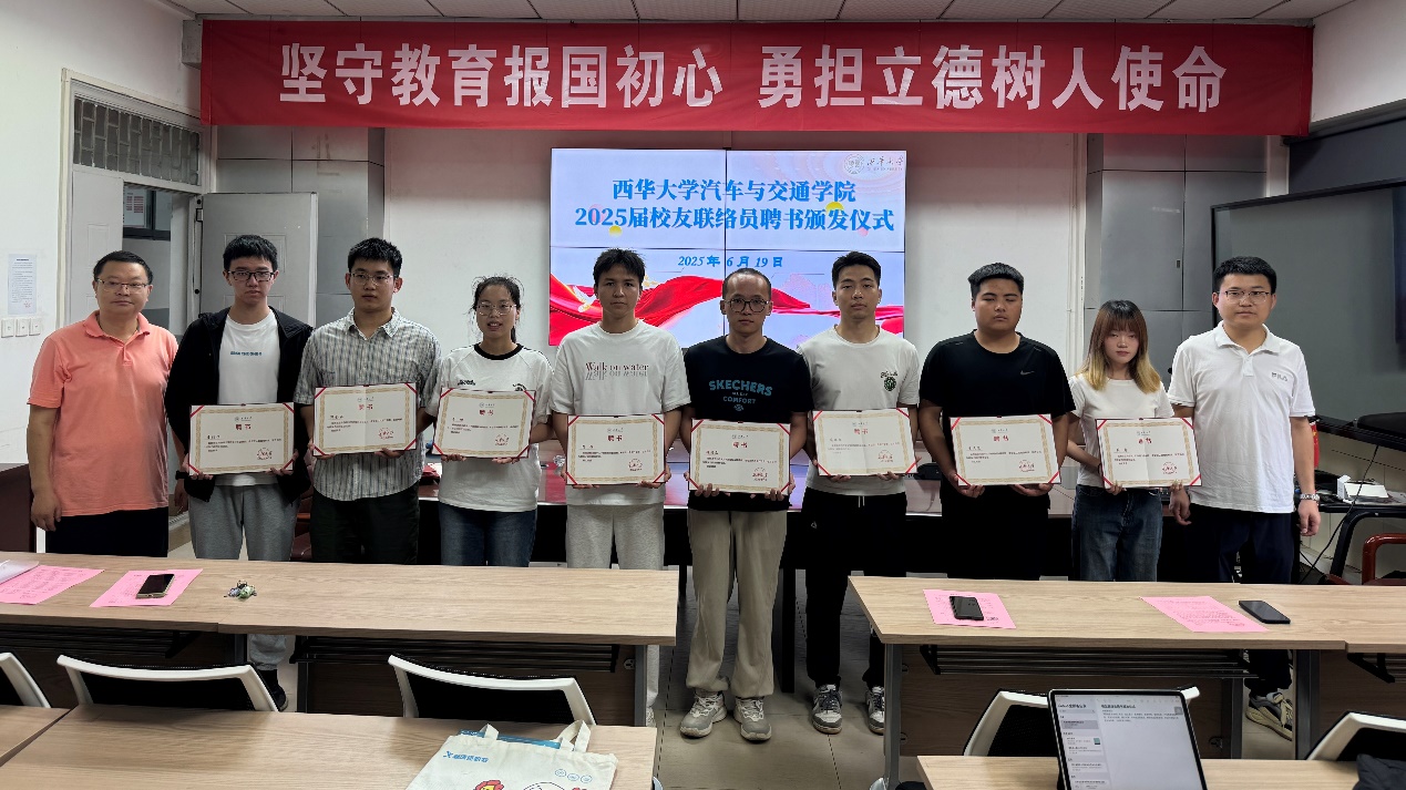 裴西宏、徐靖原共同为我院2025届校友联络员颁发聘书并合影留念。