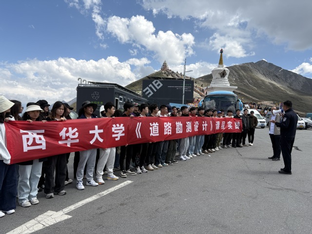 在折多山段,同学们亲身感受了从康定出发一路向西海拔急剧升高的典型地形变化。在交警引导下,学生们结合课程所学知识,分析了道路选线如何在“地形适应、地质安全、环保要求、交通安全”四者之间寻求最优解,深入思考了折多山特长隧道如何在复杂山区实现通行能力与生态保护的双重目标。