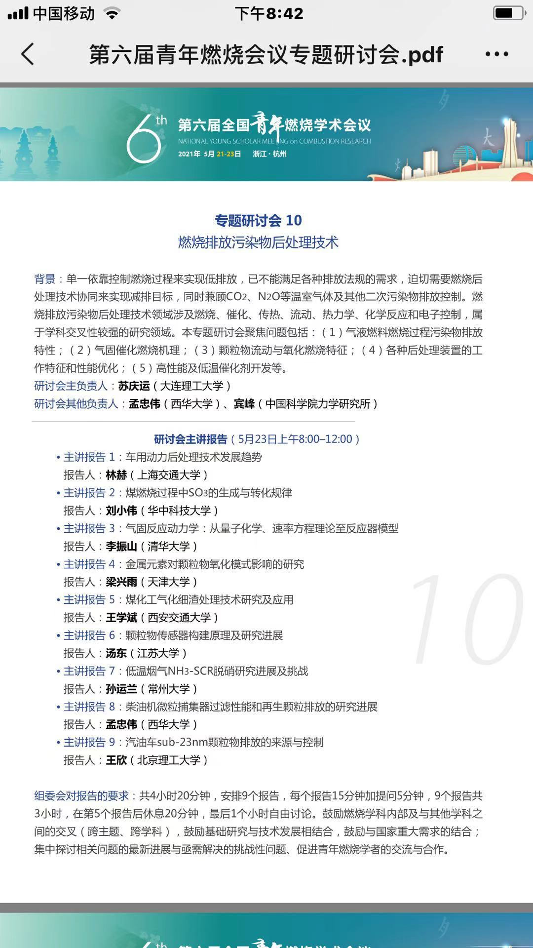 2021年5月21日至5月23日,第六届全国青年燃烧学术会议在杭州之江饭店召开。会议由国家自然科学基金委员会工程与材料学部工程科学一处和中国工程热物理学会燃烧学分会共同主办,由浙江大学能源清洁利用国家重点实验室、浙江大学能源工程学院、浙江大学航空航天学院、浙江省工程热物理学会和中国工程热物理学会燃烧学分会青年工作委员会联合承办。