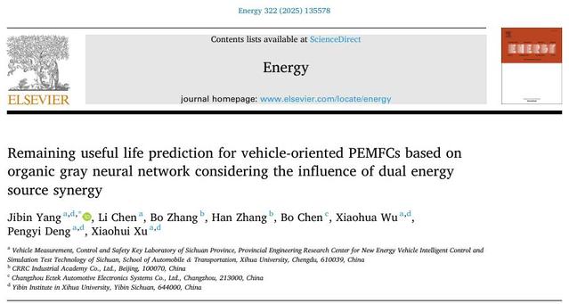 发表于《Energy》的两篇论文分别从不同角度突破技术难点:一篇(第一作者:杨继斌副教授,第二作者:2022 级硕士陈丽)考虑燃料电池与动力电池的协同工作影响,提出有机灰色神经网络预测方法;另一篇(第一作者:2022 级硕士陈丽,通讯作者:杨继斌副教授)基于改进的自适应噪声集合经验模态分解与混合驱动模型,进一步提升了预测的准确性与稳定性。