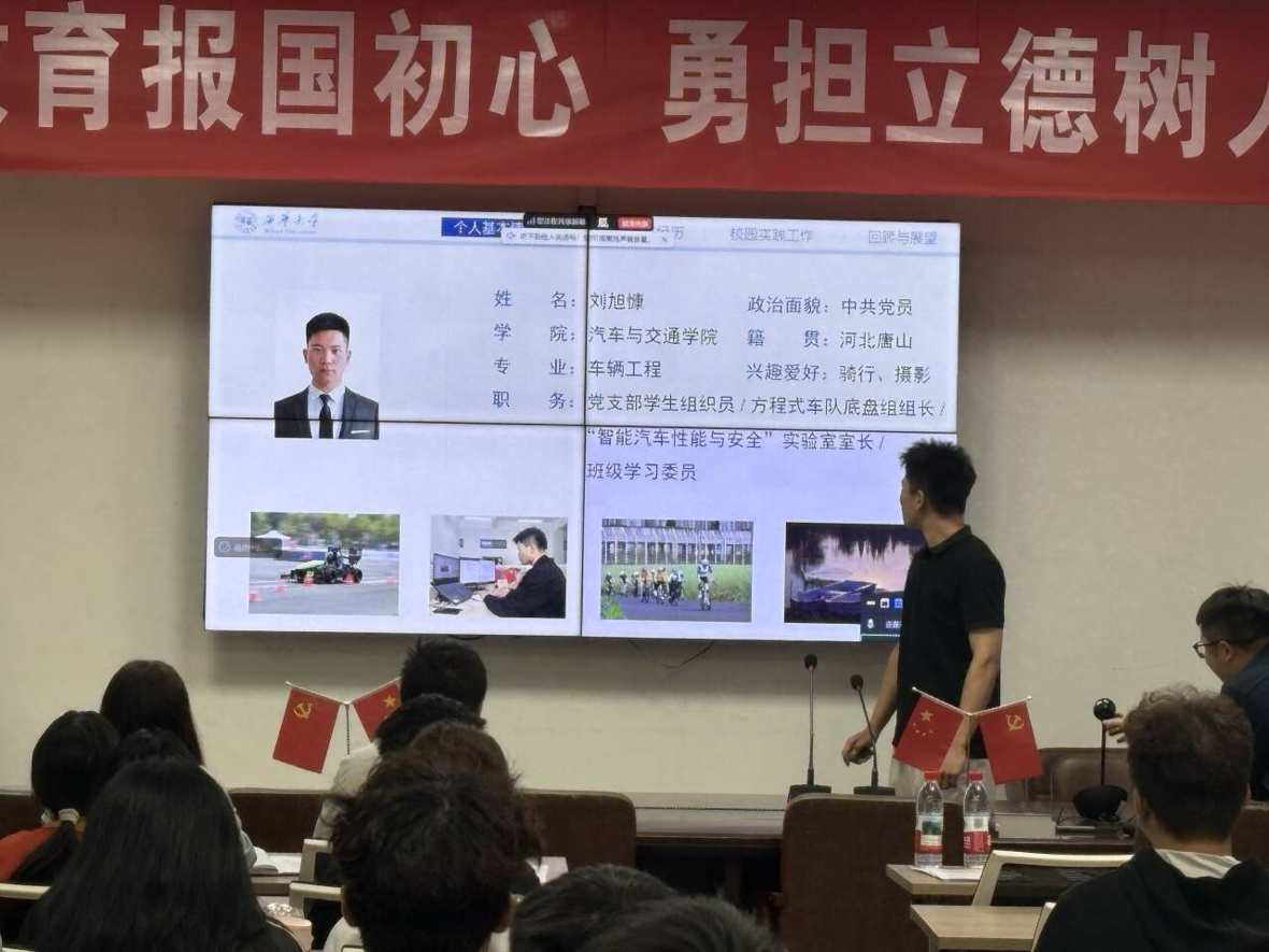 姜凯璇同学以“天地交而万物通”为切入点,结合专业学习与社会实践,诠释了新时代交通人的使命。她认为,交通不仅是道路与车辆的连接,更是人与社会、知识与实践的融合。其广阔的视野和深厚的家国情怀引起了全场师生的共鸣。