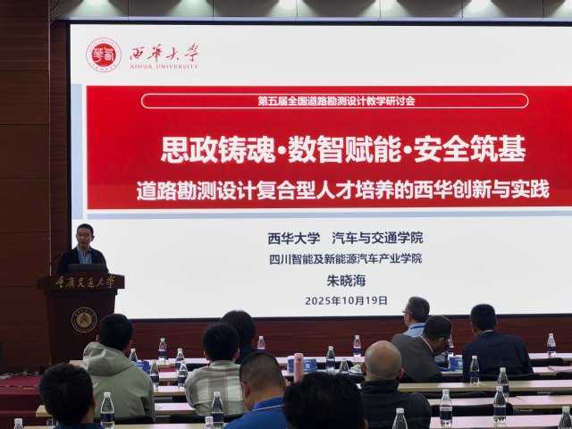 院交通科学与工程系副主任朱晓海副教授和张诗波副教授应邀出席本次会议。研讨会期间,朱晓海副教授以“思政铸魂,数智赋能,安全筑基:道路勘测设计复合型人才培养的西华创新与实践”为题作大会交流报告,介绍了我院在课程建设中的经验和先进做法。