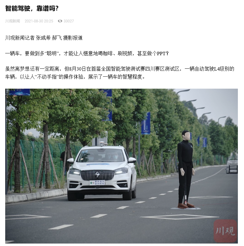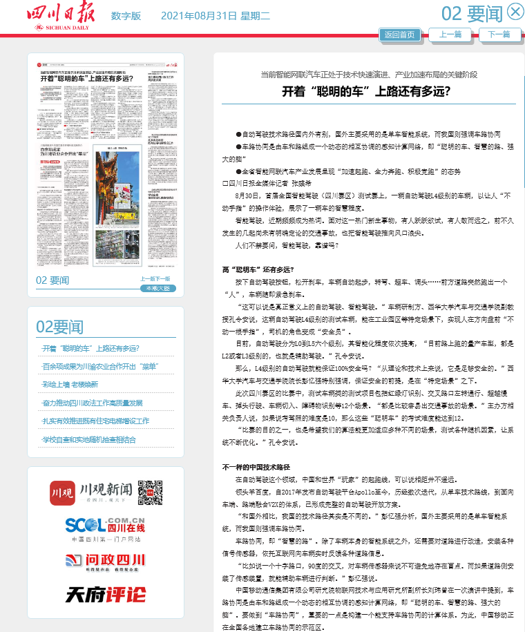 四川在线:当前智能网联汽车正处于技术快速演进、产业加速布局的关键阶段 开着“聪明的车”上路还有多远?