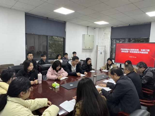 为持续提升党支部组织生活质量,深化师生党支部间的交流协作,进一步密切师生联系、凝聚发展合力,2025 11 14 日,我院办公室党支部与车辆工程研究生第一党支部联合开展主题联学共建活动,两个支部的全体党员齐聚一堂,以学促思、以思践悟,共同筑牢党建根基。