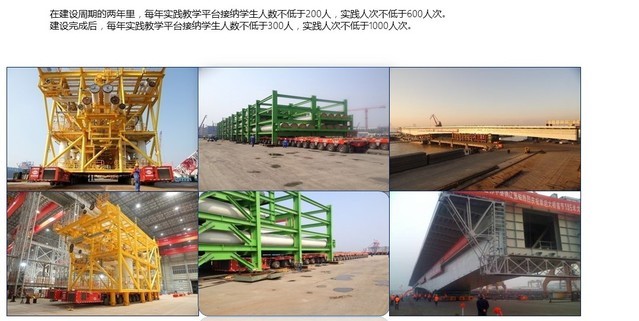 目前,实习基地设施设备齐全,引进了具有国际前沿技术的德国索埃勒48吨级每轴线360°全转向液压平板车120轴线,同时拥有法国尼古拉自控升降液压平板车119轴线以及国产液压平板车百余轴,均可根据实际情况组合拼接成不同模块使用;还拥有500吨桥式运输车,以及“梅赛德斯-奔驰”、“曼”、“沃尔沃”、“依维柯”等440马力至610马力重型牵引车20余部,风电设备专用运输车21部,此外还有鹅颈、凹心板、框架梁、电动液压顶升设备,水平推进设备等各型配套设备220余台套。现有实践场地3000平方米左右。将以中外运为主,与产业链上的企业一起打造实践教育平台,建设场地面积不低于20000平方米。现有实践项目20个左右,将基于“高特精尖”设备仪器等硬件资源建设100个左右的实践项目。中心建立的实践平台,在保障bevictor伟德相关专业学生的实践培训之外,将向社会开放实践资源。