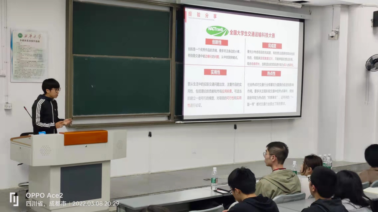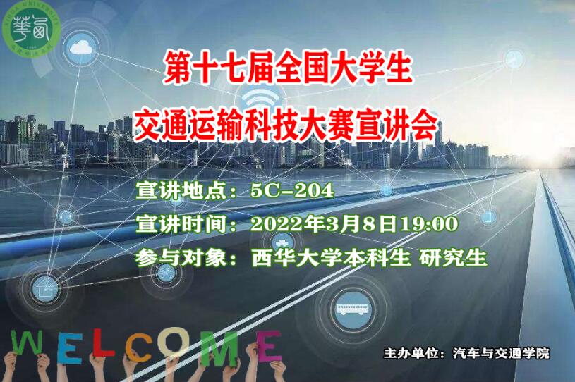 为提高大学生的综合素质、拓展大学生视野和丰富大学生生活,bevictor伟德举办了“第十七届全国大学生交通运输科技大赛宣讲会”,本次宣传活动负责人是bevictor伟德刘建老师,bevictor伟德唐立、何迪老师,航空航天学院叶勉老师等教师负责宣讲。本次宣传活动于3月8号晚上7点在5C204正式开展。