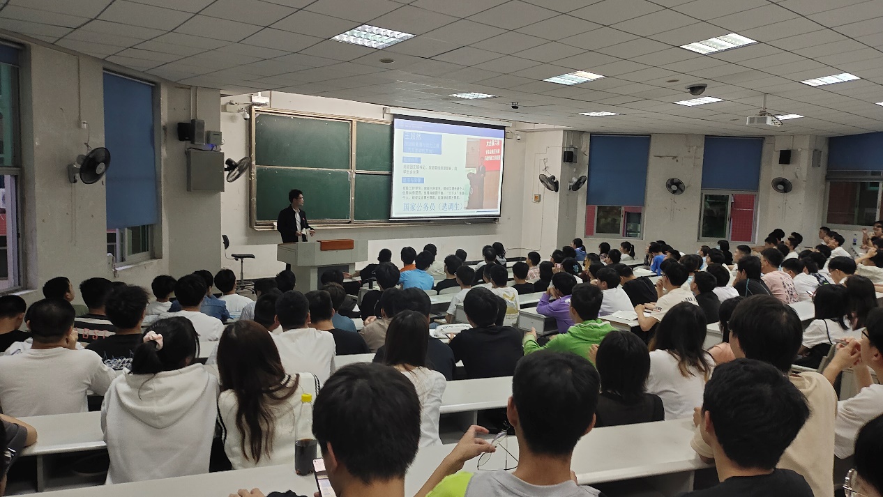 2018级能源与动力工程(汽车发动机方向)学生王超然向与会同学详细介绍了公务员与选调生的概念、公务员考试时间、考试科目和面试形式。另外,他指出考公和就业、考研并不冲突,不要过于盲信培训机构,珍惜每次考试机会。最后,他基于自身经历,语重心长地建议同学们要时刻反思以下三个问题:头脑是否清醒、方向是否明确、努力是否实在,避免大学生活留下遗憾。