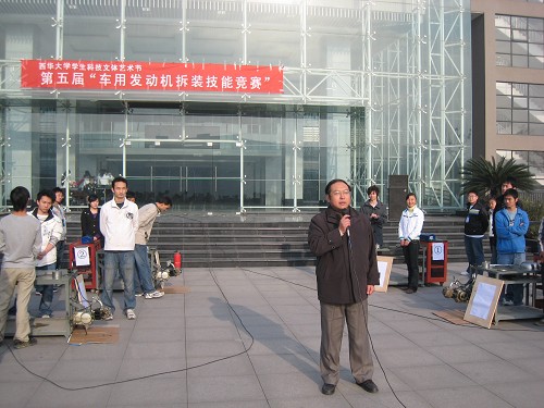 11月29日上午,由共青团bevictor伟德委员会主办,交通与汽车工程学院、汽车协会联手承办的第五届“车用发动机拆装技能竞赛”决赛在五教广场隆重举行。交通与汽车工程学院党总支书记魏远文、院长黄海波、副书记副院长毕达平,四川教育学院汽车应用技术学院副院长陈士力等领导莅临现场。黄海波表示,本次竞赛是我院的传统项目,我们已经成功举办过四届大赛,车用发动机拆装主要锻炼学生的动手、协作能力。