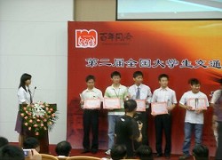 | 2007年,交通工程和物流管理专业学生分别参加了由高等学校交通运输学科教学指导委员会交通工程分委员会主办的第二届全国大学生交通科技大赛和由教育部物流专业指导委员会与中国物流采购联合会举办的第一届全国大学生物流设计大赛 。 由骆勇副教授指导的陈坚 许胜德 刘熙 王超深同学的作品《成都市蜀西路城市快速路交通管制优化方案》在数百件交通科技大赛原创作品中,入围全国24强,赴上海同济大学参加总决赛获得了优秀作品奖;由高红丽和刘晓晗老师指导的陈勇军、吉克、何建明、蒙银萍、曾晚霞、温兆康六位同学合作完成的作品《成都市火车北站BRT车站设计》也获得了该次大赛的优秀作品奖。物流设计大赛中由梁涛老师指导的田联平、王小强 、张丽、王天霞、高菊燕同学的作品《鼎助安得》进入了复赛阶段。 | 获奖证书及奖杯 | |  学生设计的BRT站台及获奖证书 | | |  赴上海参加总决赛的学生和老师 | |  颁奖典礼 | |