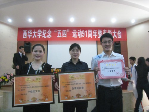 首先,校团委蒋志勇书记发表讲话,蒋书记说:“‘爱国、科学、进步’是‘五四’运动的精神,我们要坚定不移地跟党走”;同时蒋书记还对青年学生提出了自己的期望,即要永远跟党走、要刻苦学习、要甘于奉献,希望大家充分发挥带头作用,开拓进取,引领先进风尚。之后,党委组织部副部长唐润华老师宣布了此次获得先进表彰的单位和个人。此中,交通与汽车工程学院获得了先进分团委称号、汽车学院07物流管理专业荣获十佳团支部、汽车学院07车辆的李伟荣获了十佳团干称号。