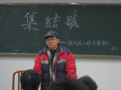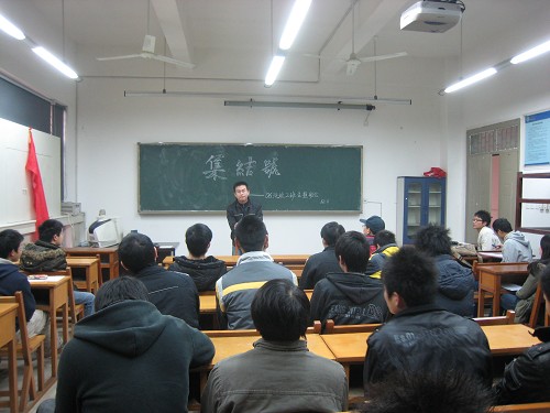 12月9日上午,06级汽车发动机2班举行了名为“集结号”的主题班会,作为英语四六级以及期末考试的号召鼓励。汽车学院党总支书记魏远文教授出席了本次班会,汽车学院分团委书记李绍军老师作为班主任参加了这次班会。