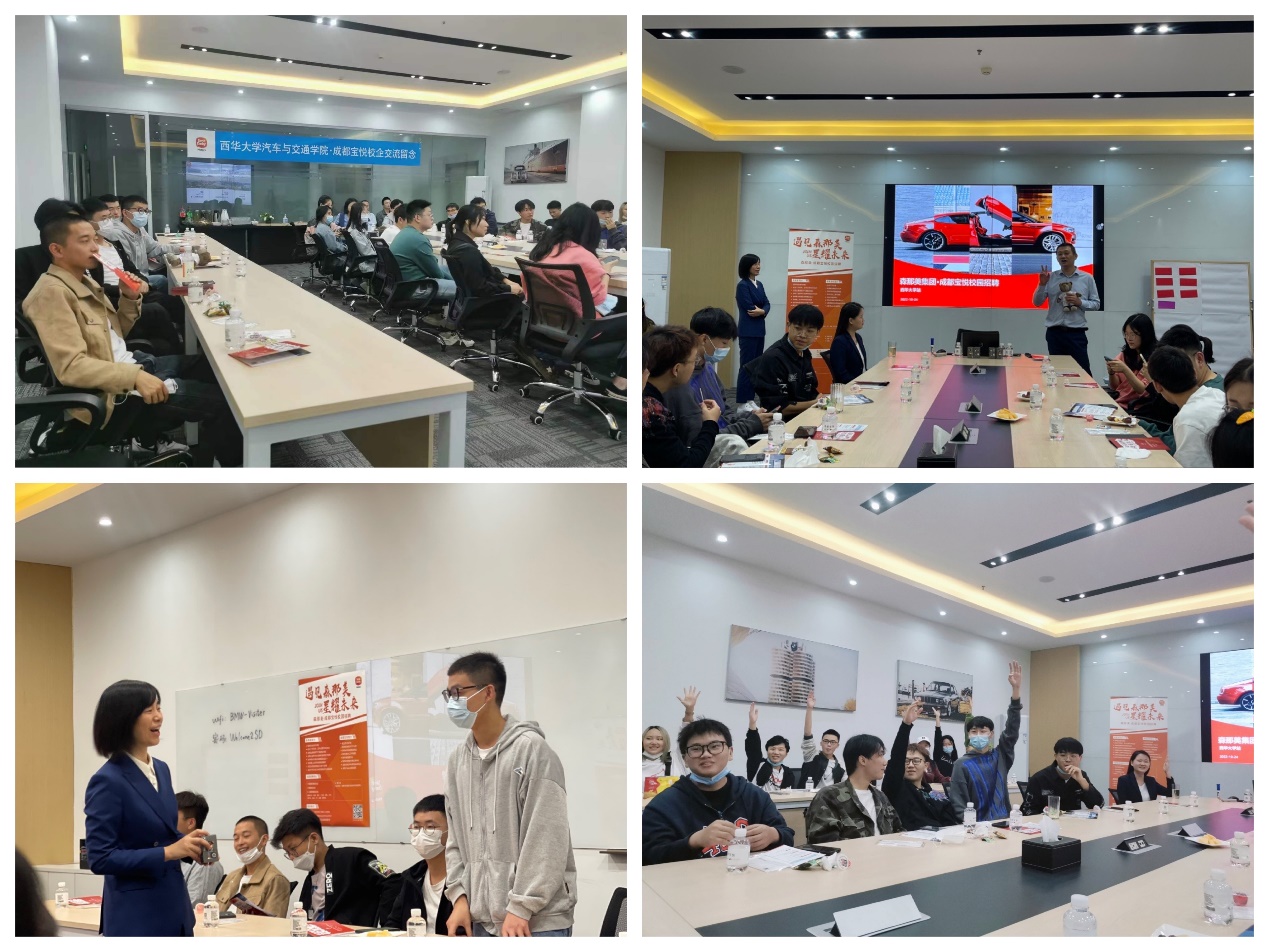 在座谈会上,陆经理给来访的师生们详细介绍了公司的创立经历、发展历程、企业文化、管培项目、用人需求,她期望能够有更多的西华学子来成都宝悦实习、就业。在倾听了学生们的择业观念、人生规划与职业需求后,陆经理邀请学院2018届学生、集团售后数据分析主任彭倩分享自己的求职、就业经历。校友彭倩向来访的学弟学妹们讲述了她来到成都宝悦后的切身感受,鼓励大家多做尝试、勇于追梦,并逐一回答了学弟学妹们现场所提出的各种问题,获得了热烈的掌声。