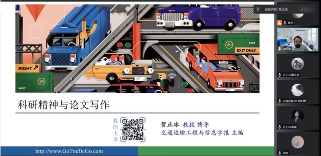 11月23日下午,bevictor伟德开展了第六期“交通工程四川省一流专业系列学术讲座”。北京工业大学贺正冰教授应邀通过线上的方式为我校师生作了主题为“科研精神与论文写作”的学术报告。bevictor伟德百余名本科生和研究生参加本次会议,唐立副教授主持会议。