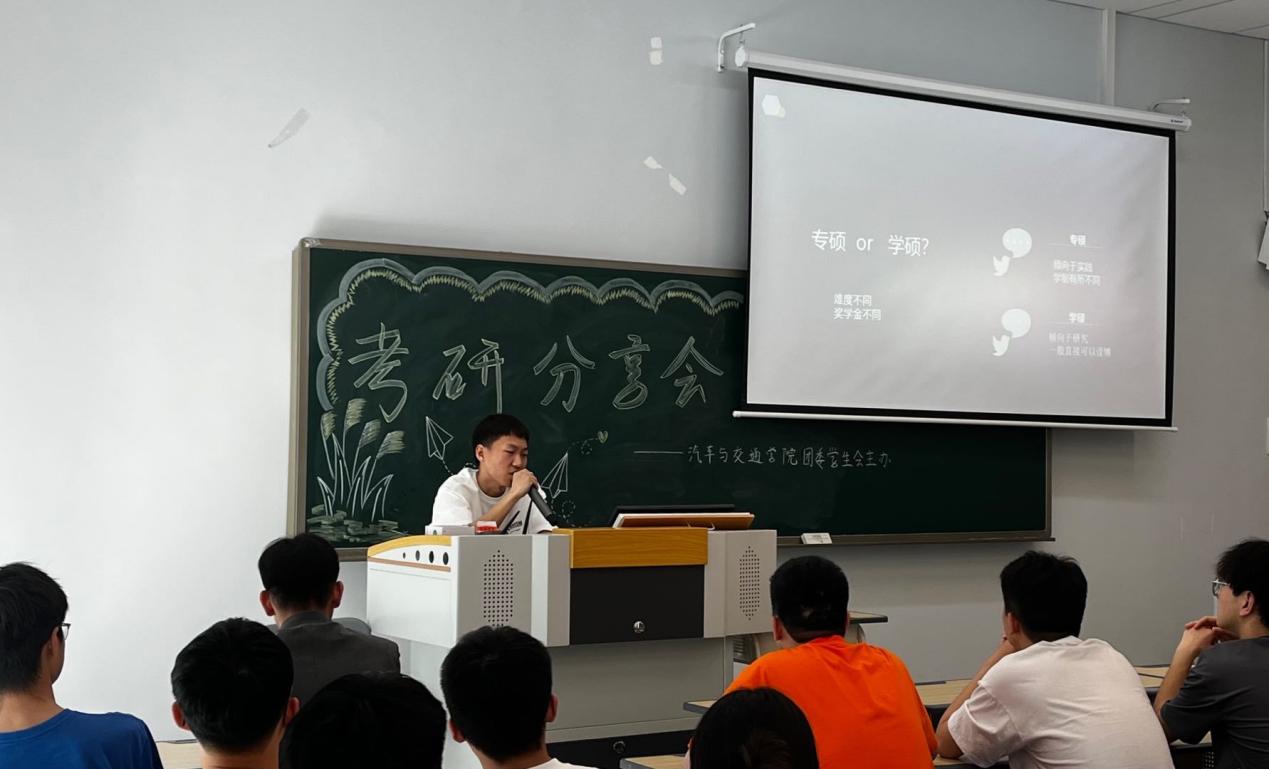 在分享会上中,周兴鹏、刘新雨、张洪铭等分别分享了他们的考研经验,包括如何准备考试、如何选择专业、如何备战复试等。此外还分享了自己的备考经历和心路历程,并鼓励同学们要坚持不懈地努力,不要去听流言蜚语,相信自己一定能够成功。