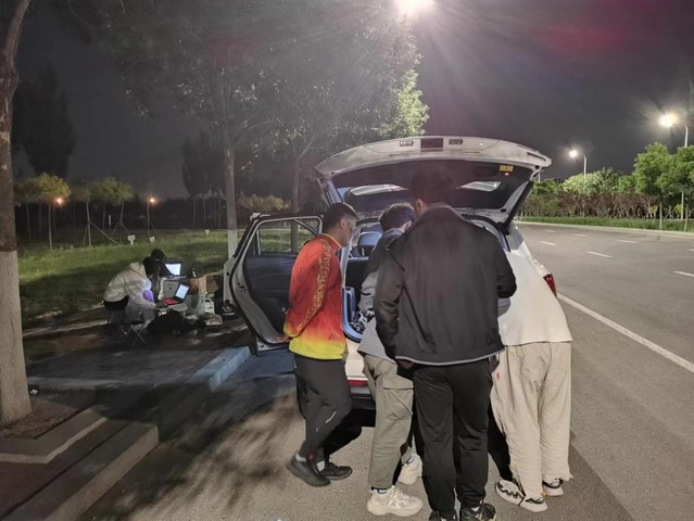 车队深夜调试车辆