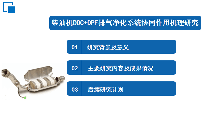 题目1:柴油机DOC+DPF排气净化系统协同作用机理研究
