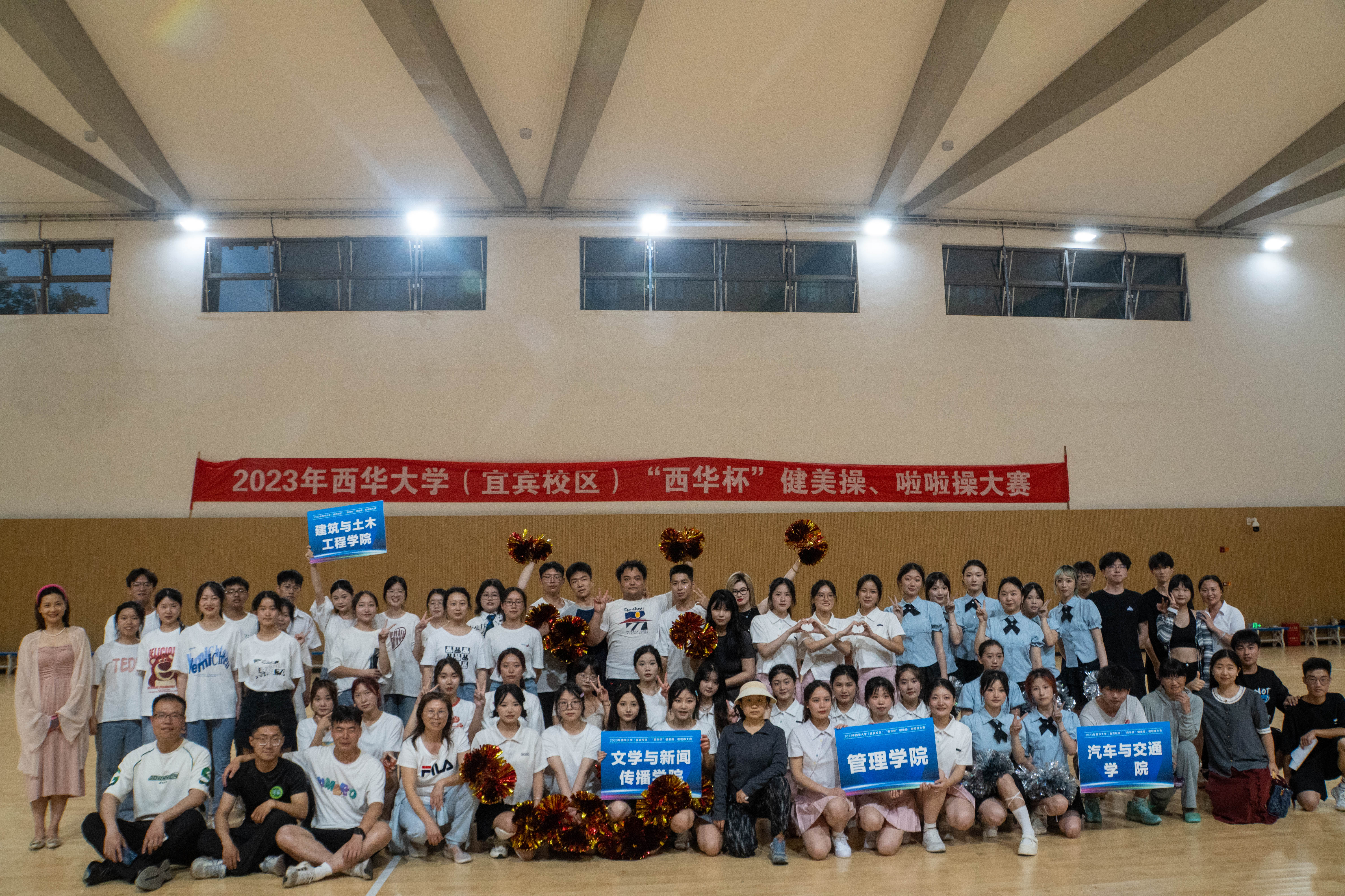 为丰富校园活动,宣扬体育运动精神,加强学生综合素养,展现青春活力风采,由bevictor伟德宜宾校区体育委员会承办的2023届“西华杯”健美操、啦啦操大赛于6月1日晚上19点,在宜宾校区室内篮球场拉开帷幕。,举办了2023届“西华杯”健美操,啦啦操大赛。由我院9名学生(魏铭、赵乐、胡和芬、何儒苹、王恩蓓、陈依蔓、王婉奕、香梅、何蕊)组成的参赛代表队在本次大赛中取得了第一名的好成绩。