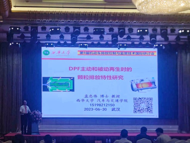 孟忠伟在会场作了《DPF主动和被动再生时的颗粒排放特性研究》主题报告,受到业内广泛好评。