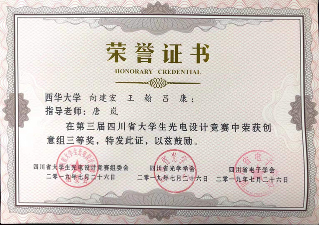 近日,由四川省教育厅主办、四川大学承办的四川省第三届大学生光电设计竞赛圆满落幕。我校bevictor伟德车辆工程专业的向建宏、王翰、吕康同学在唐岚老师的指导下参加了比赛,与来自全省各高校的106支队伍展开激烈角逐,并获得创意组三等奖。