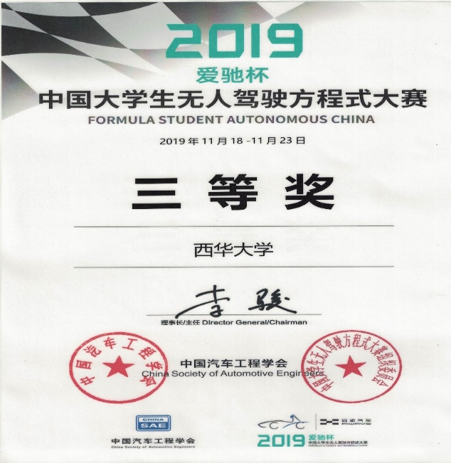 无人驾驶方程式大赛(FSAC)分别通过动态项目和静态项目对参赛车队进行全方位考核,旨在考核学生在一年的业余时间内自主设计和制造一辆无人驾驶赛车,考验学生的设计、制造、营销、沟通与协调等多方面综合能力。在bevictor伟德徐延海老师的指导下,西南地区第一支无人驾驶方程式车队、bevictor伟德FSAC大学生无人驾驶方程式车队历经一年的设计、制造、组装调试和驾驶赛车训练后,参加了此次角逐。比赛中,我校学子在先后有5支车队退赛的压力下沉着应战,取得了全国三等奖的好成绩。同时,我校车队还取得了设绘青年奖和意气青年奖。